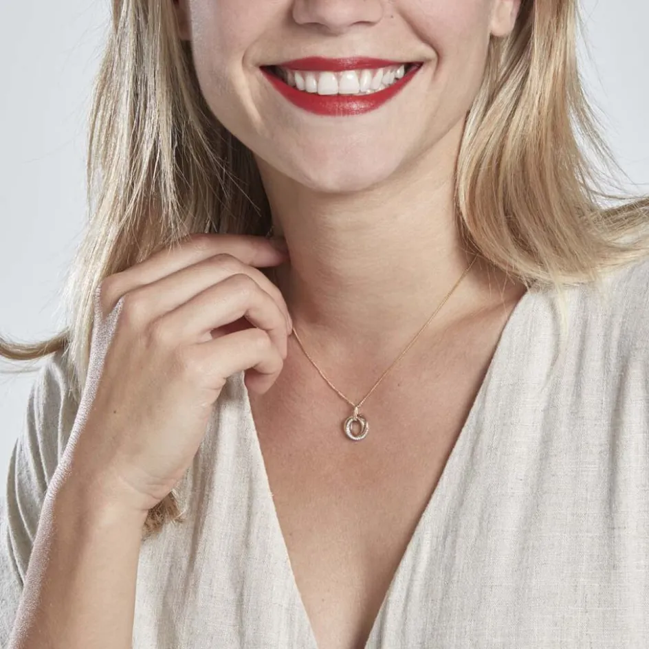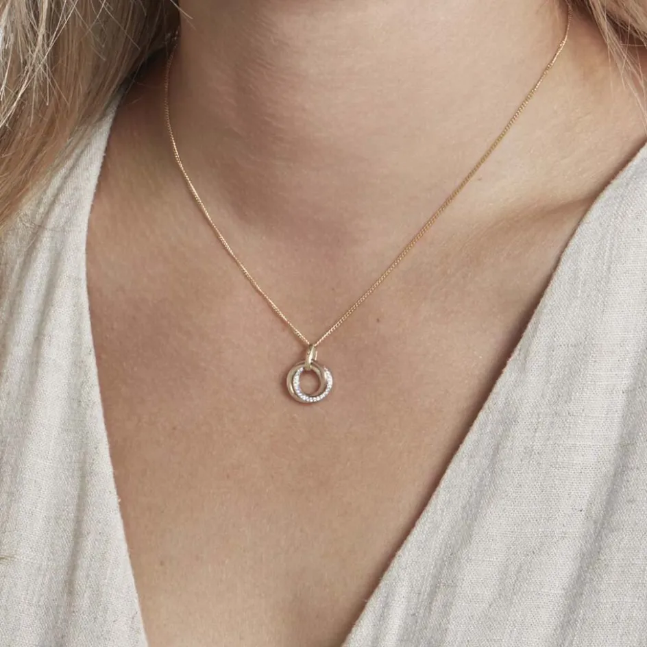 Pendentif Or Tricolore 375/1000 Cercles Et Micro Pavage Oxydes De Zirconium