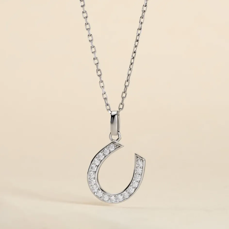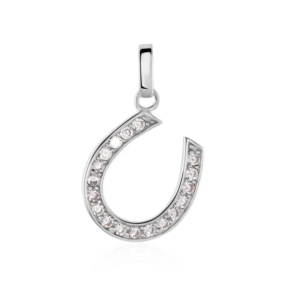 Pendentif Argent Blanc 925/1000 Fer A Cheval Pavage Oxydes De Zirconium