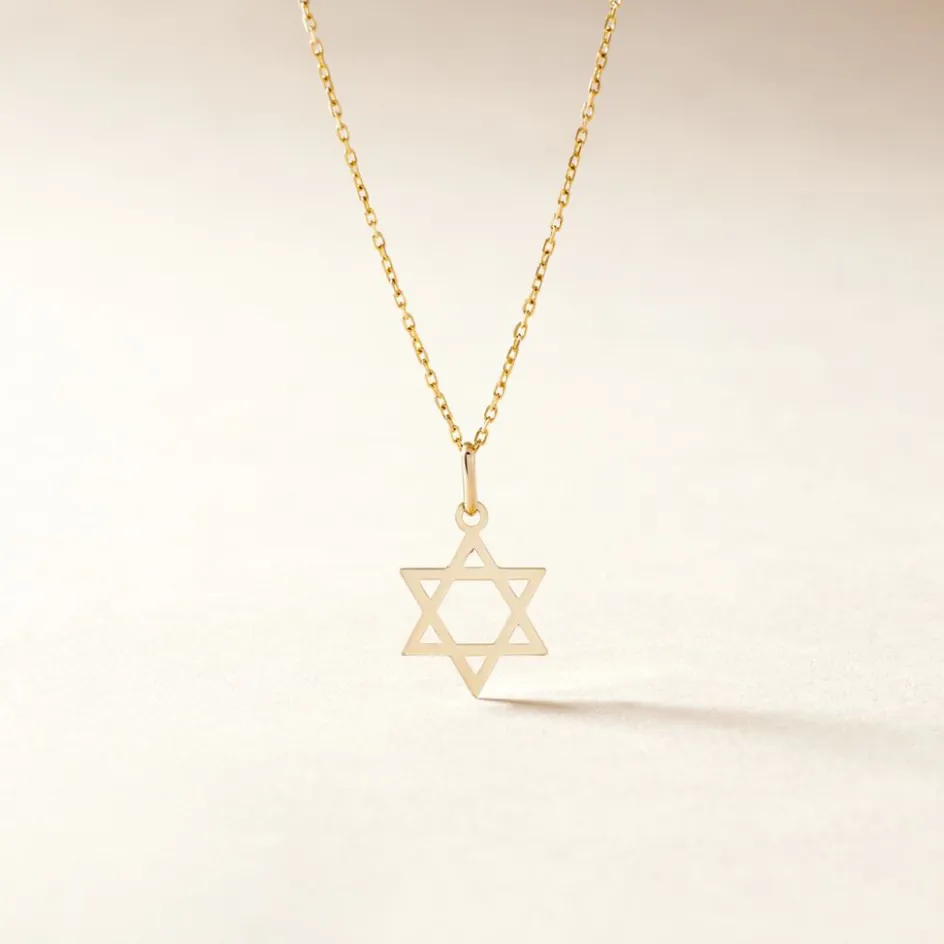 Pendentif Or Jaune 375/1000 Motif Etoile De David Lisse Ajourée