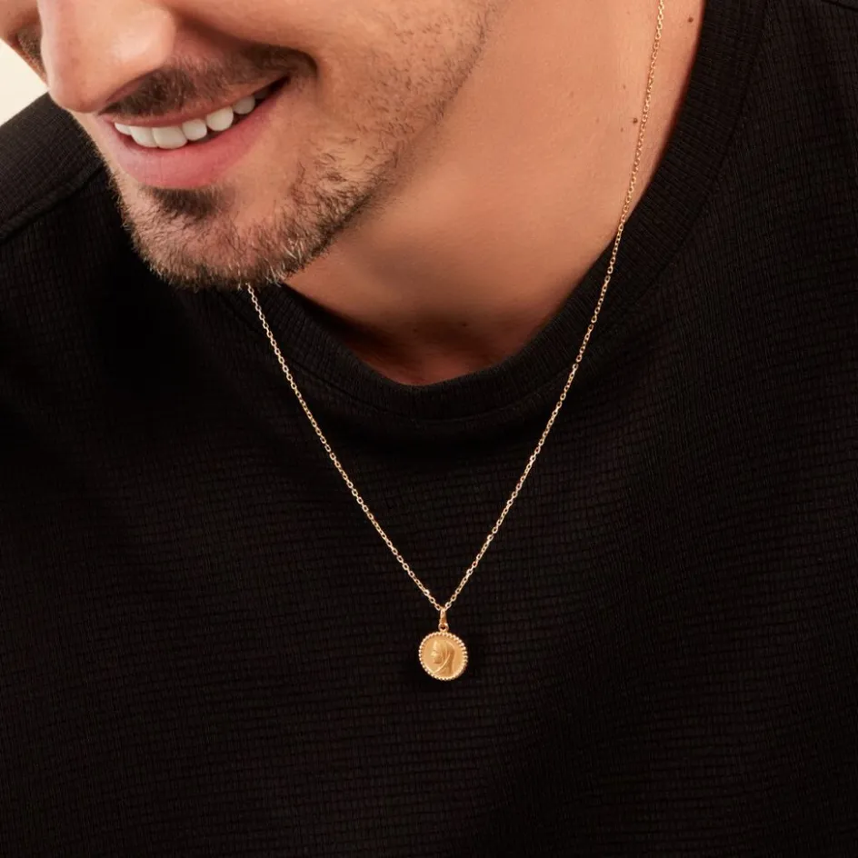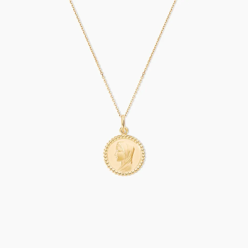 Medaille Or Jaune 750/1000 Vierge Effet Mat Contour Perle Diametre 16mm