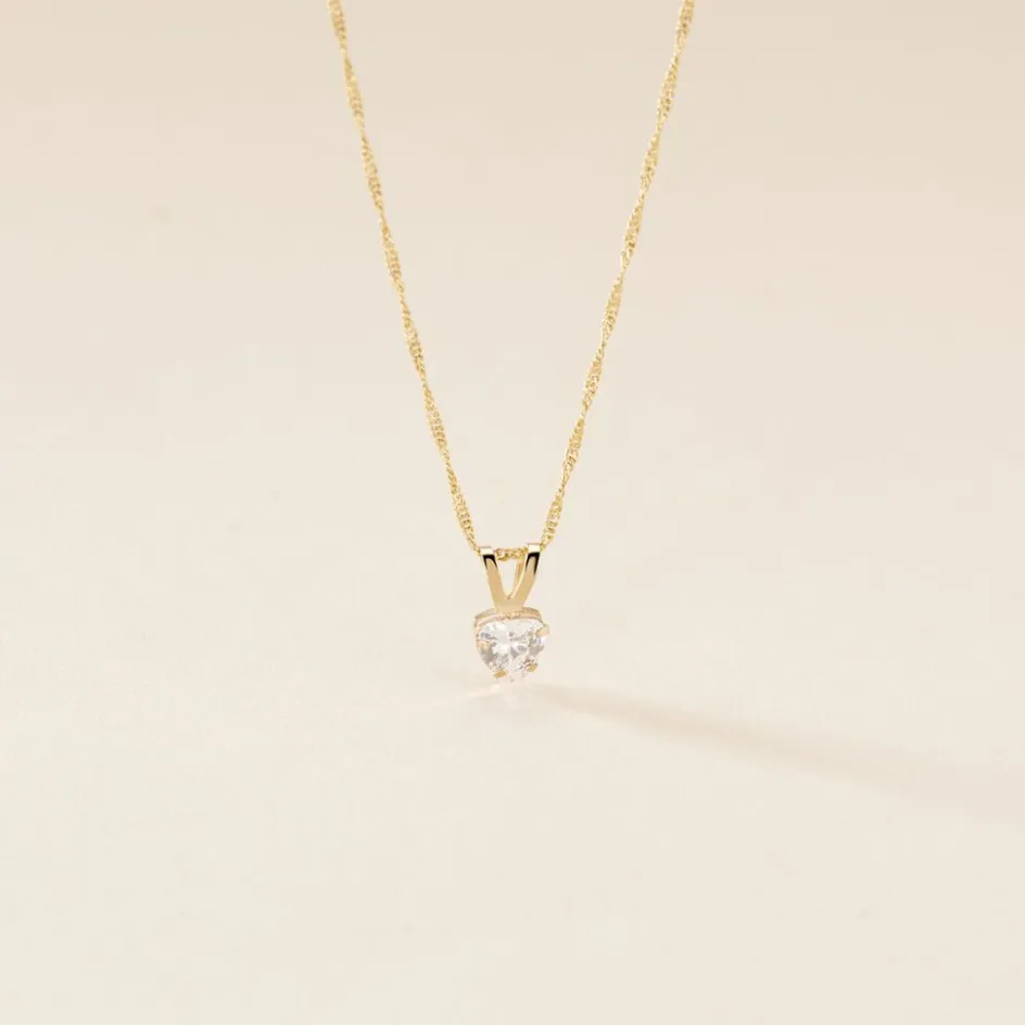 Pendentif Or Jaune 375/1000 Coeur Oxyde De Zirconium Pm