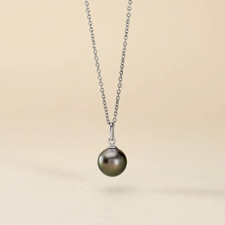 Pendentif Or Gris 375/1000 Perle De Culture De Tahiti Noire 9.5/10mm