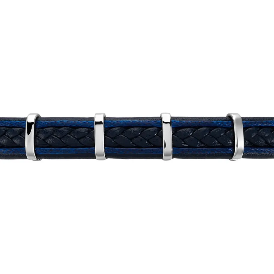 Bracelet Jourdan Homme Cuir Noir Et Fils Bleu Acier Gris 21.5cm Rc 030 H