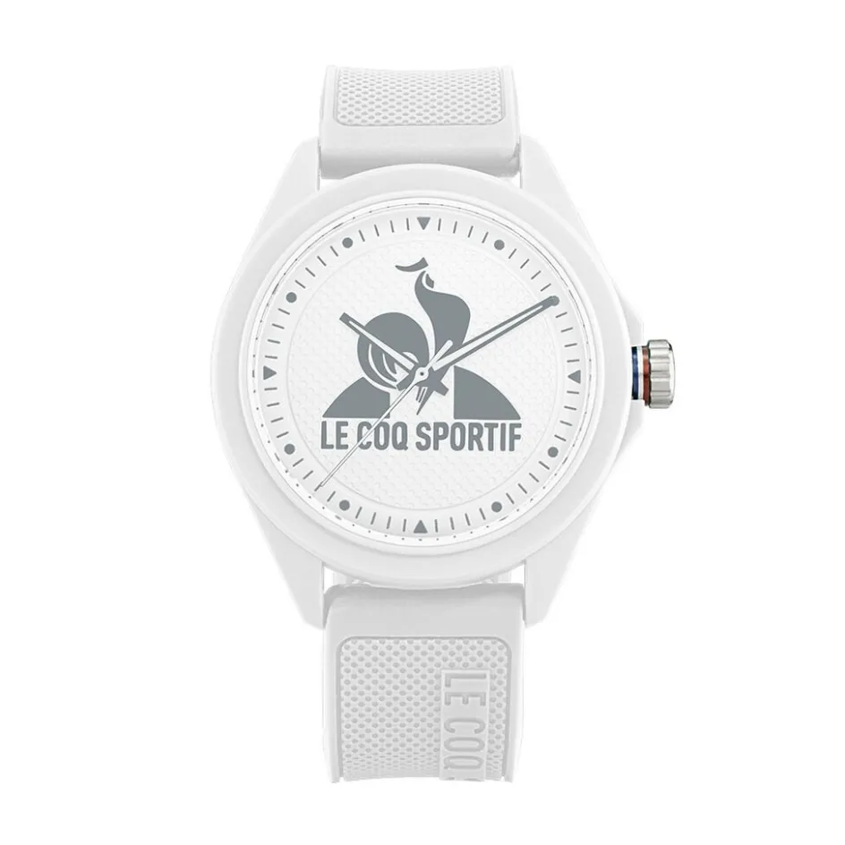 Montre Le Coq Sportif Monochrome Plastique Blanc Ronde Quartz 42mm Fond Blanc Lunette Blanche Bracelet Plastique Blanc Lc10012rpw00