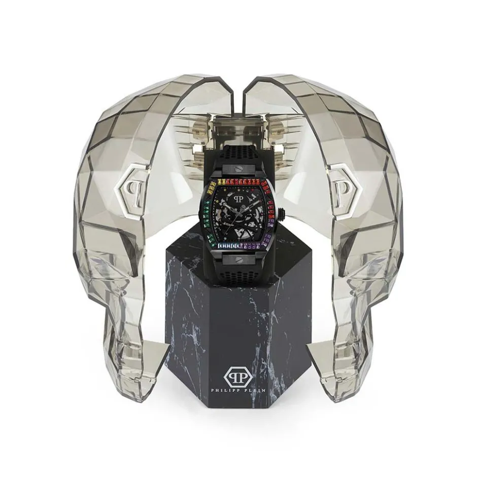 Montre Philipp Plein The $keleton Acier Noir Tonneau Automatique 44mm Fond Noir Bracelet Silicone Noir Pwbaa0621