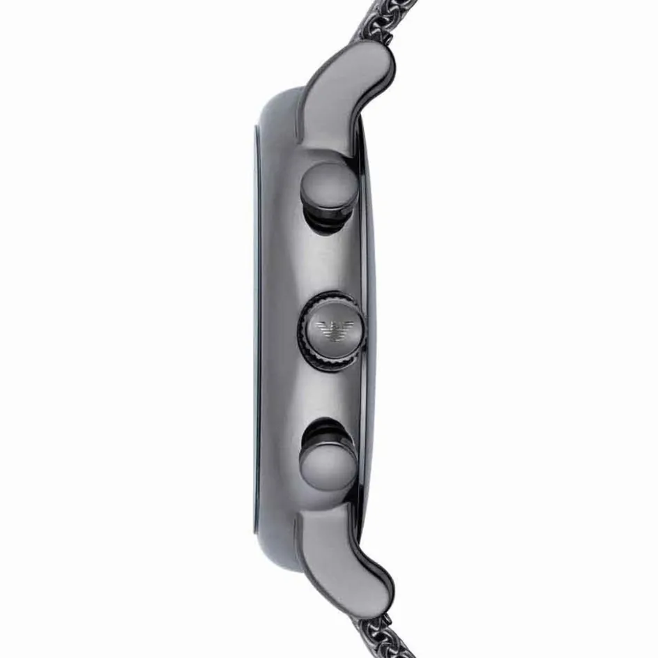 Montre Emporio Armani Chronographe Acier Gunmetal Ronde 46mm Fond Bleu Bracelet Milanais Acier Gunmetal 5atm Ar1979