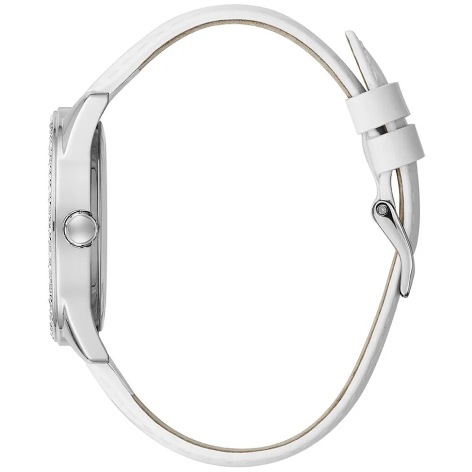 Montre Guess Sugar Acier Gris Ronde Quartz 37mm Fond Blanc Bracelet Cuir Blanc Gw0098l1