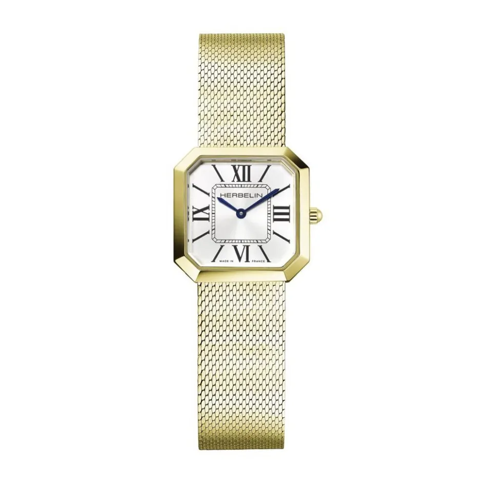 Montre Herbelin Octogone Acier Inoxydable Doré Quartz Geometrique 24,5X24,5 Fond Argenté Bracelet Milanais Acier Inoxydable Doré 17426Bp08