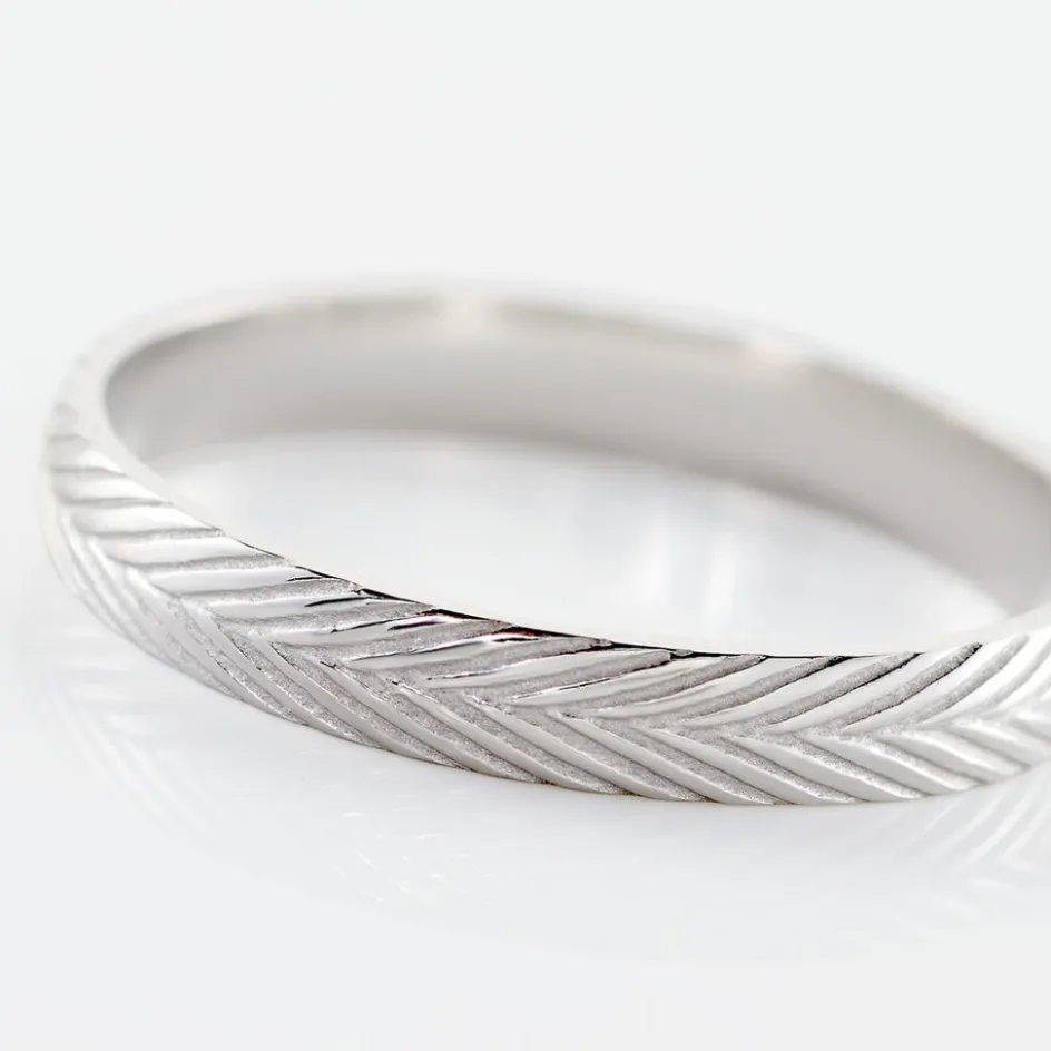 Alliance Or Blanc 375/1000 Fantaisie Motif Epi 3.5mm