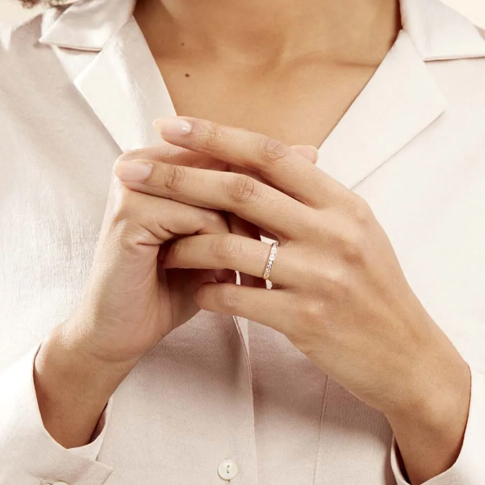 Demi Alliance Or Jaune 375/1000 Oxydes De Zirconium Ronds Serti Rail 2mm