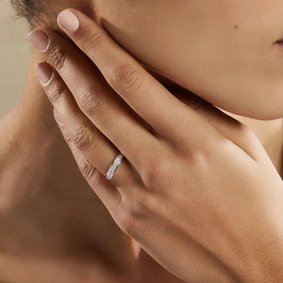 Alliance Or Blanc 375/1000 Diamants Serti Rail 0.48cts