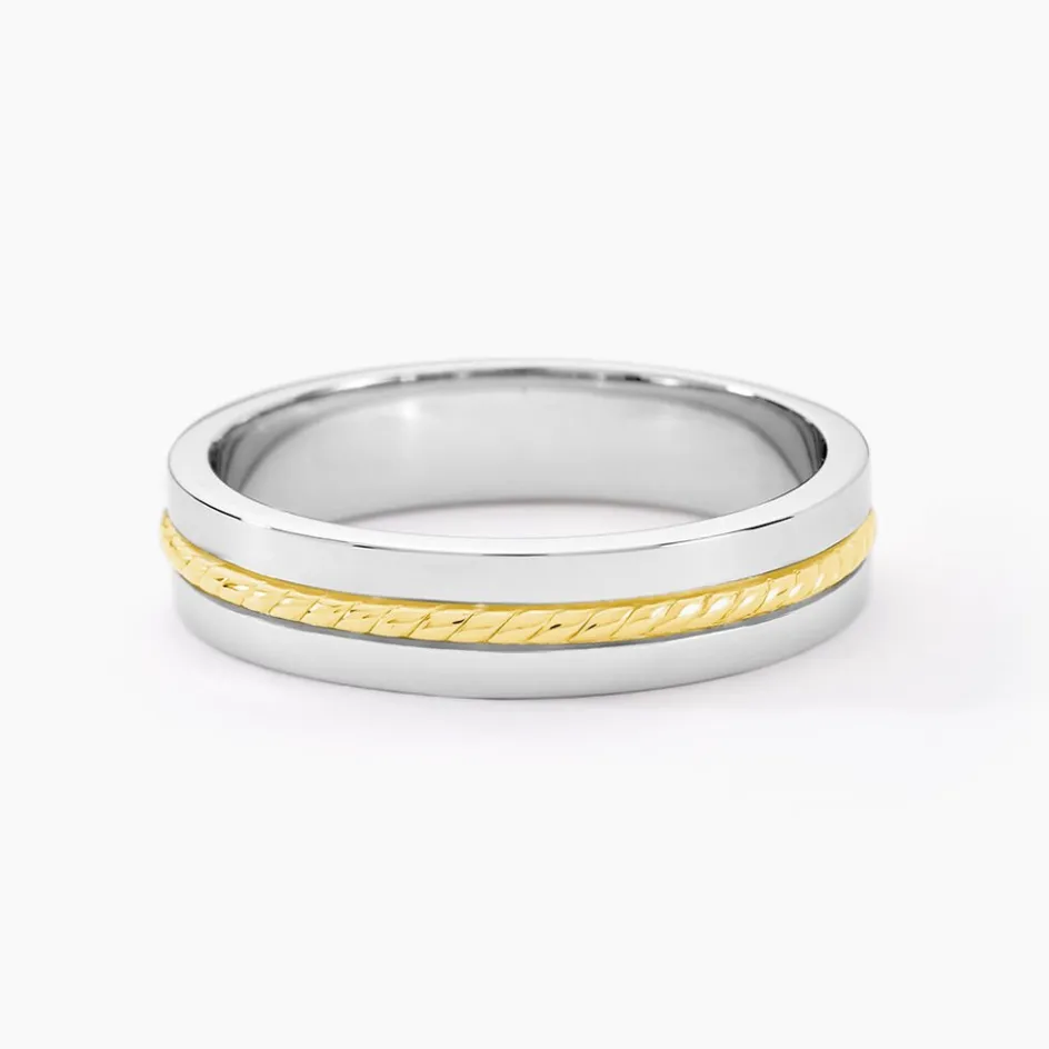 Alliance Argent Bicolore 925/1000 Ruban Effet Torsade 5mm