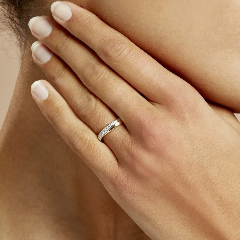 Alliance Or Bicolore 375/1000 Jaune Et Blanc Entrelacée Diamantée 3mm