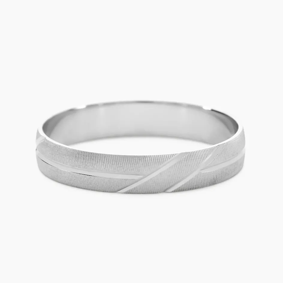 Alliance Or Blanc 375/1000 Brossée Et Multi Ciselée 4mm