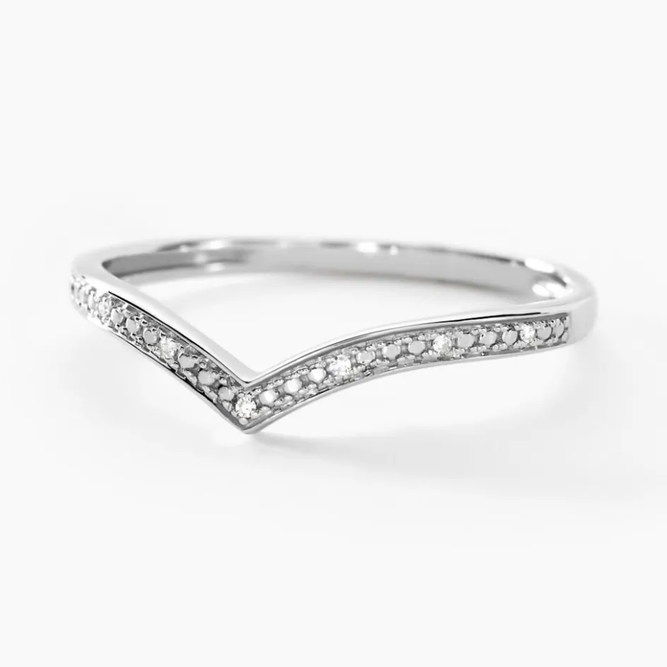 Bague Or Blanc 375/1000 Aile De Mouette Pavage Diamants Ronds