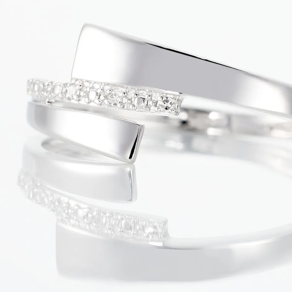 Bague Or Blanc 375/1000 Formes Croisées Pavage Diamants