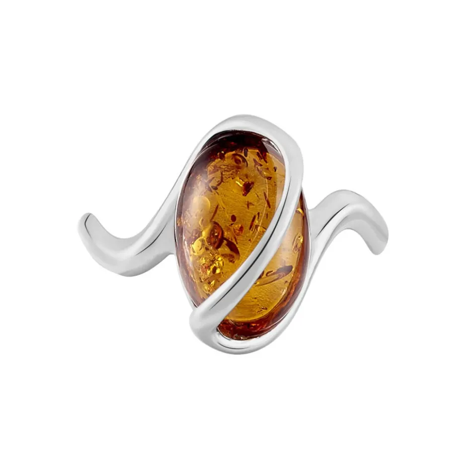 Bague Argent Blanc 925/1000 Ambre Forme Amande