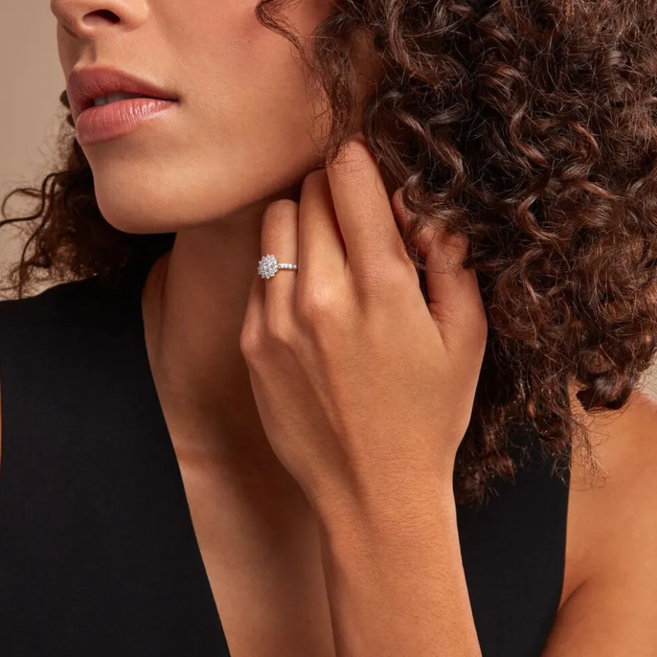 Bague Or Jaune 750/1000 Diamants Synthetiques Multipierres Forme Chou Serti Griffes 0.51cts