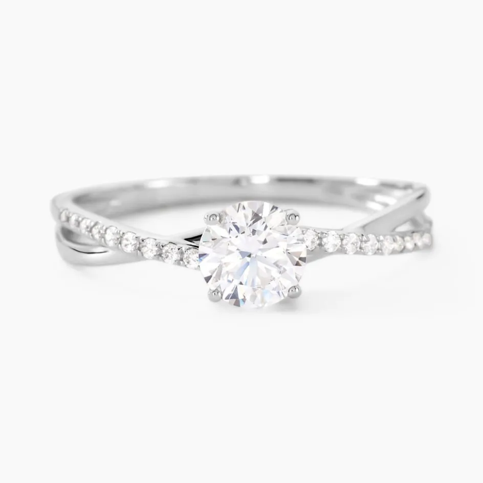 Bague Or Blanc 375/1000 Oxyde De Zirconium Central Corps Vrille Accompagne