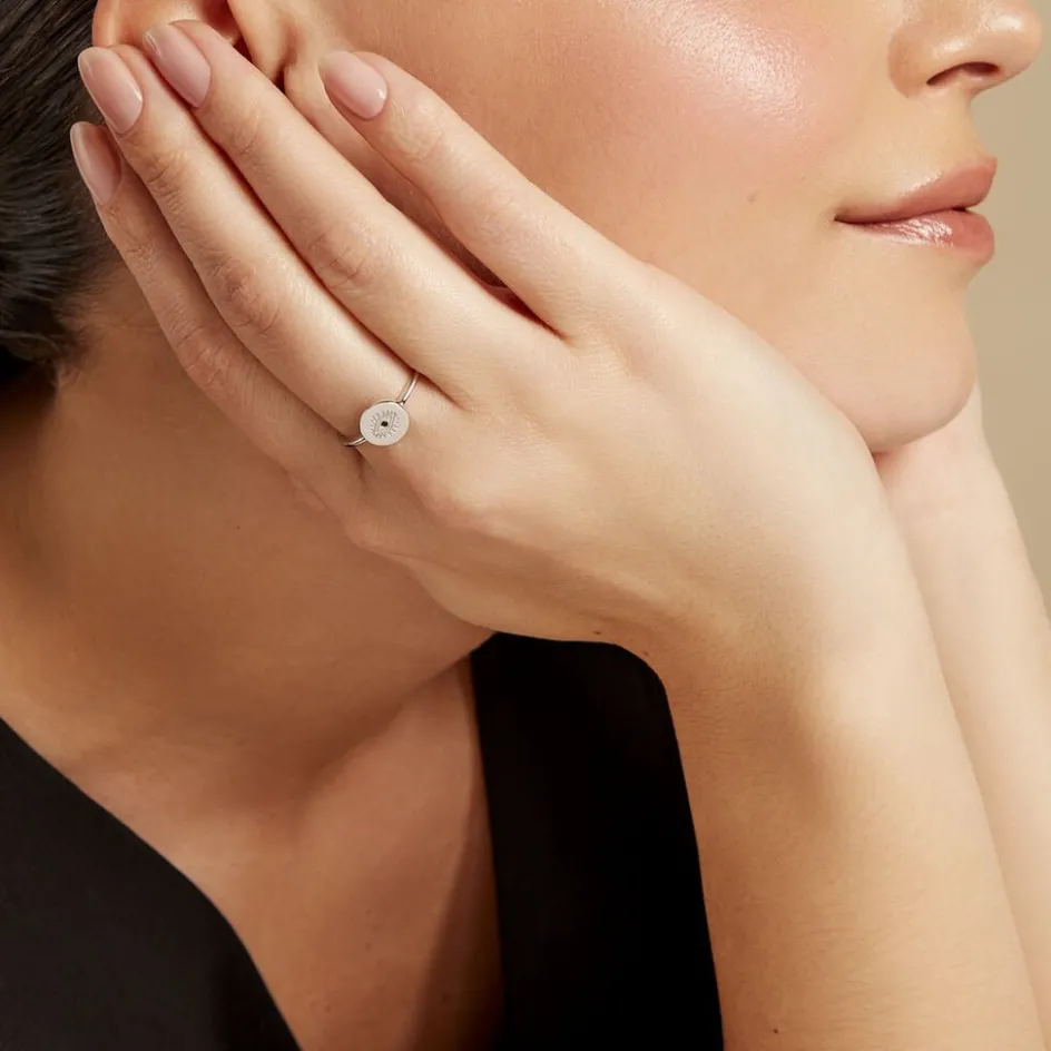 Bague Argent Blanc 925/1000 Oeil Turc Oxyde De Zirconium Noir