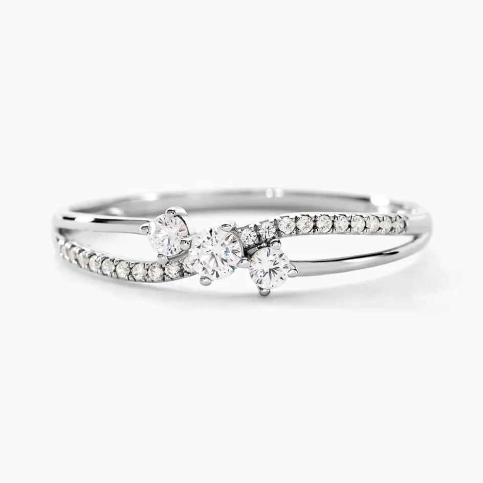 Bague Or Blanc 375/1000 Trilogie Oxydes De Zirconium Corps De Bague Accompagne Oxydes De Zirconium