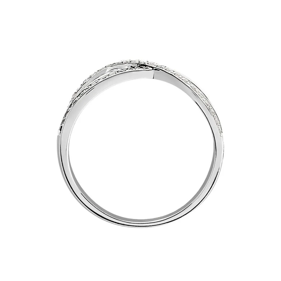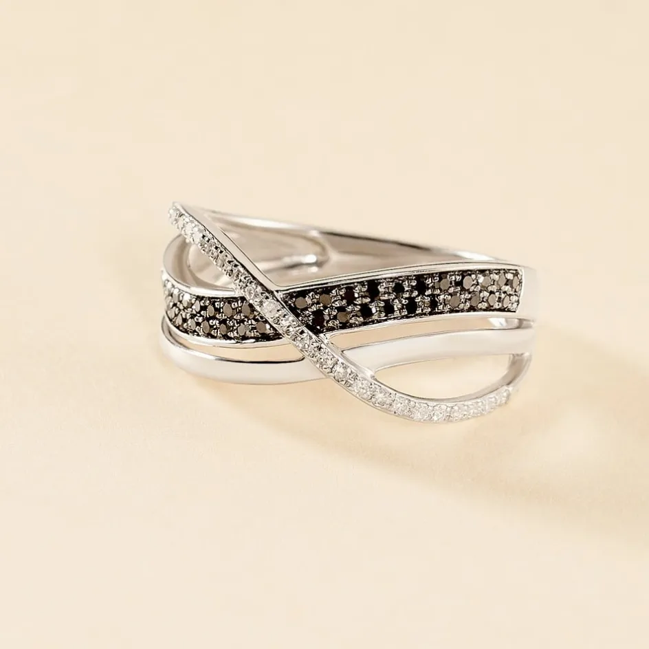 Bague Or Blanc 375/1000 Diamants Blancs Et Noirs Croises