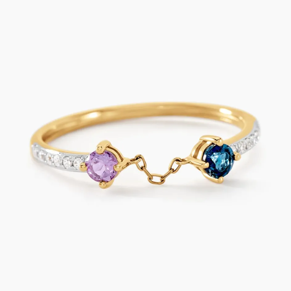 Bague Chaine Or Jaune 375/1000 2 Emeraudes Vert Brillant Serti Griffes