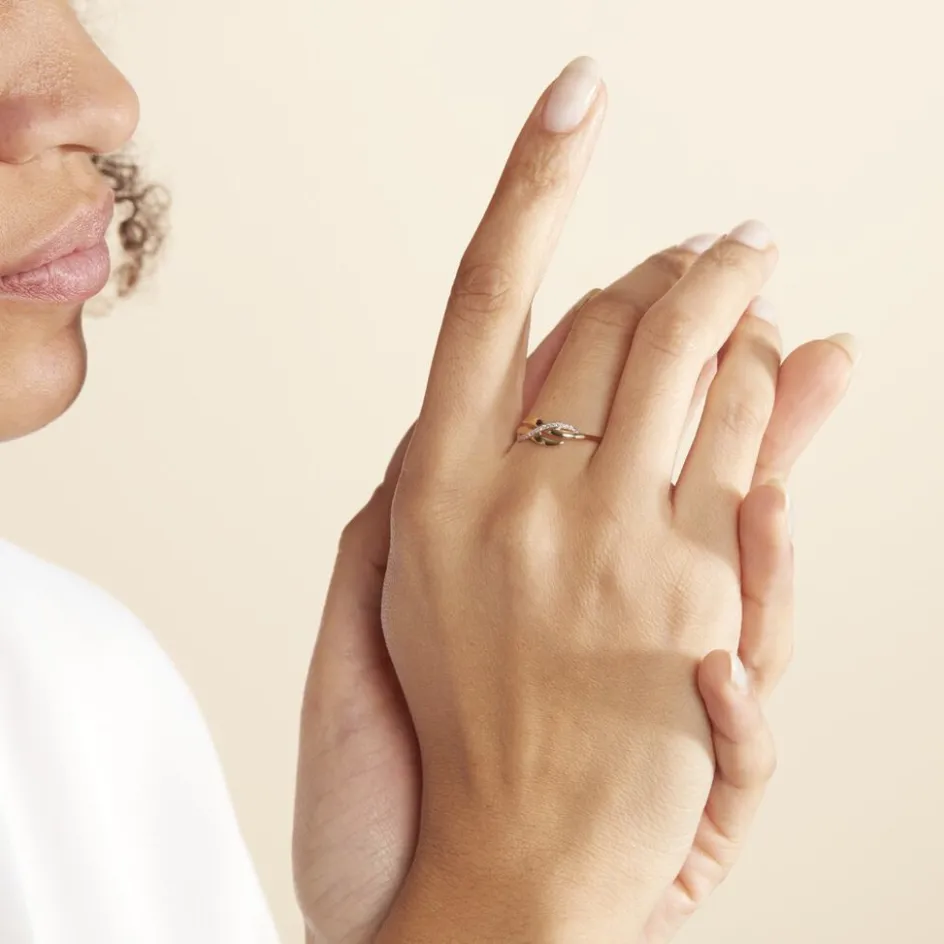 Bague Or Jaune 375/1000 Vague Double Diamants Forme Croisee
