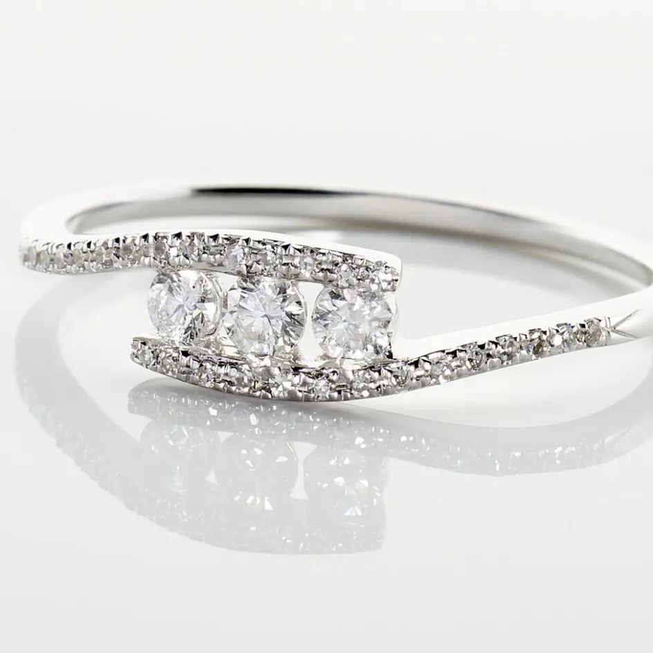 Bague Or Blanc 375/1000 Eternite Trilogie Diamants 0.22cts Mm