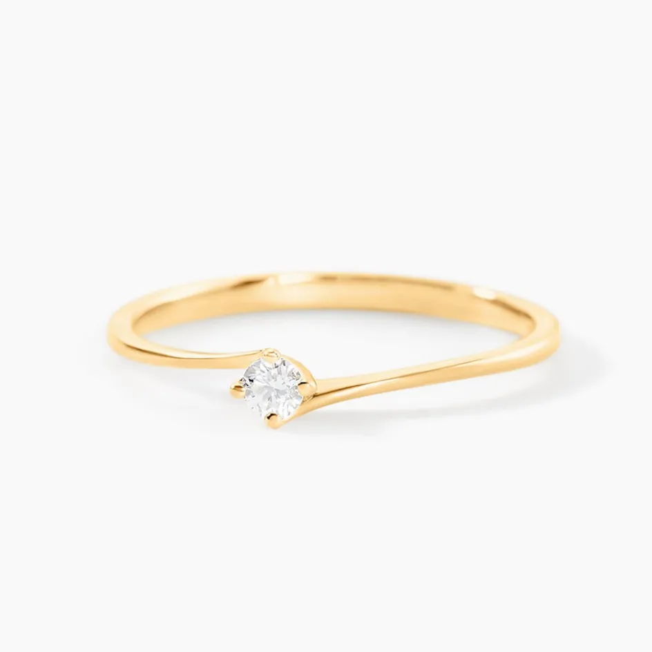 Bague Or Jaune 375/1000 Solitaire Vrille Diamant 0,07Cts Serti Griffes