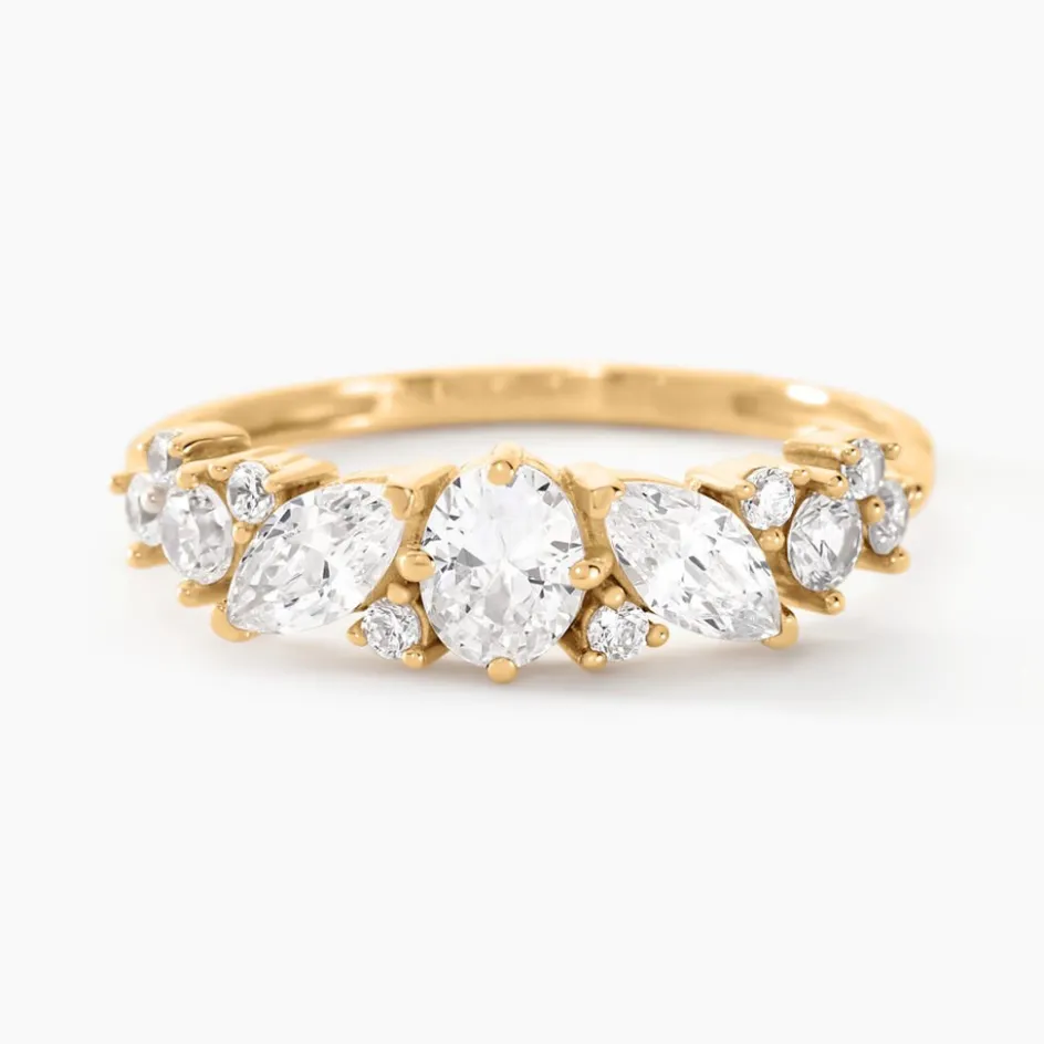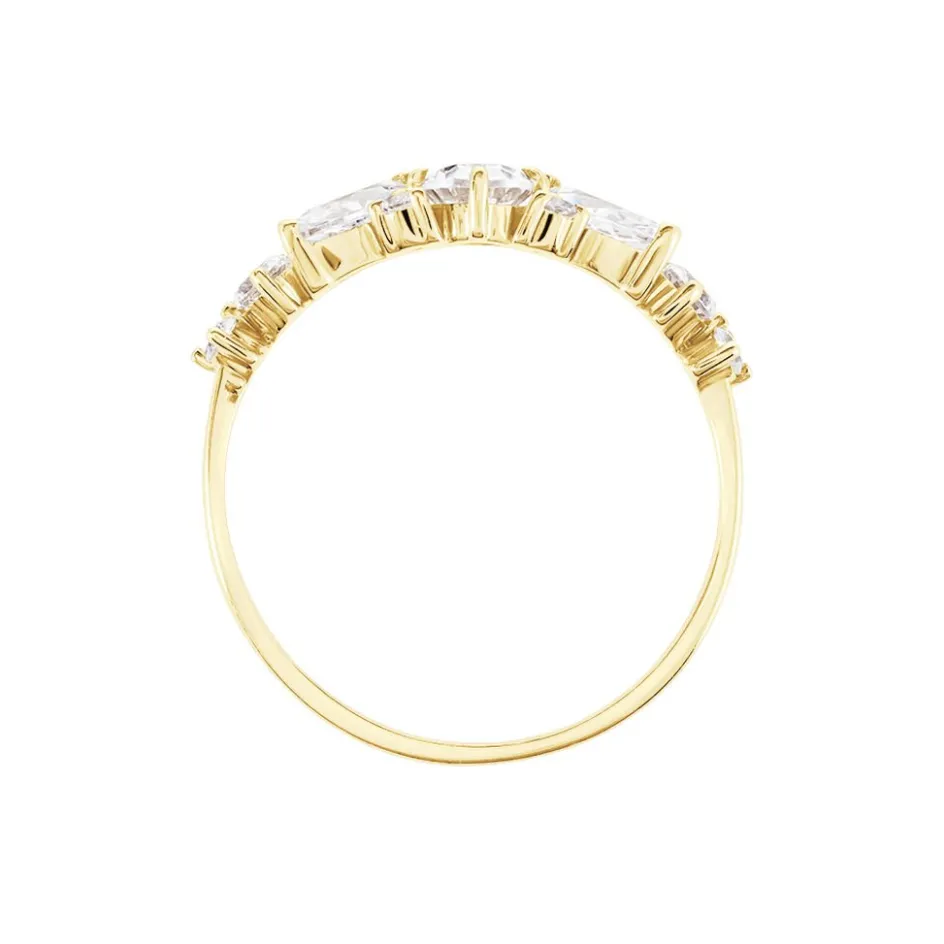 Bague Or Jaune 375/1000 Multipierres Oxyde De Zirconium Navette Et Rond Serti Griffes
