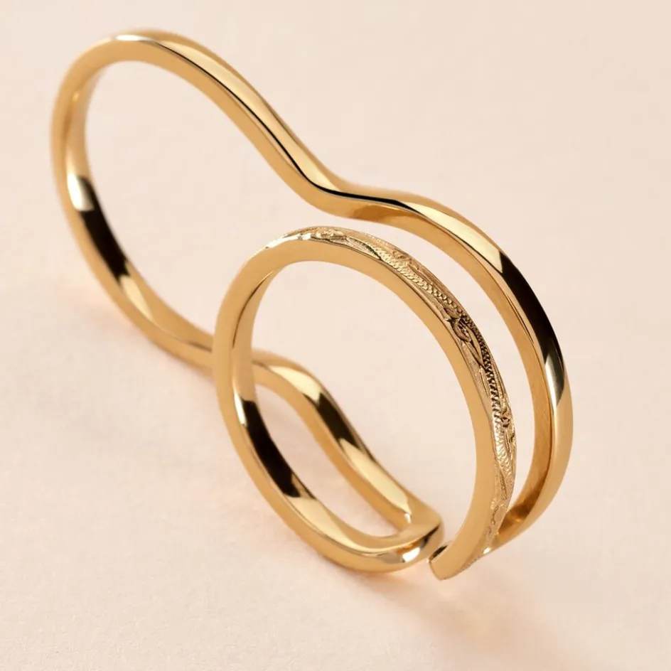 Double Bague Ajustable Acier Inoxydable Jaune Forme Organique