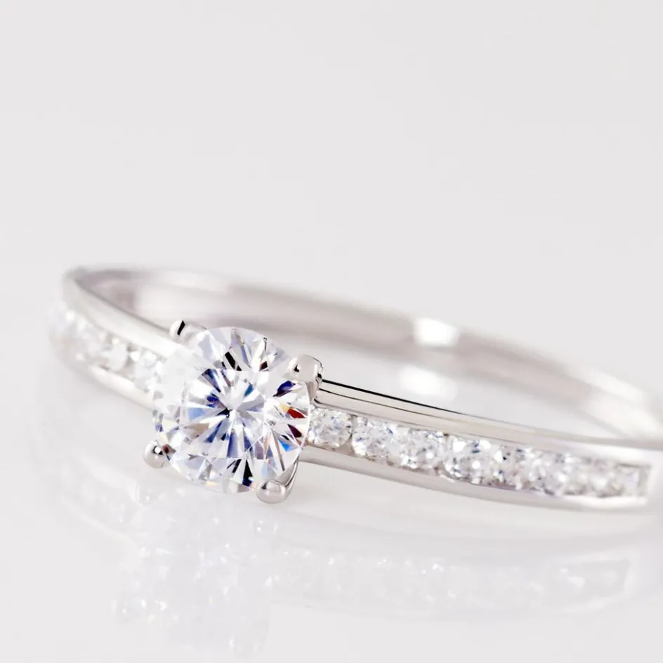 Bague Or Blanc 375/1000 Oxyde De Zirconium Blanc Central Accompagne D’oxydes De Zirconium Serti Rail