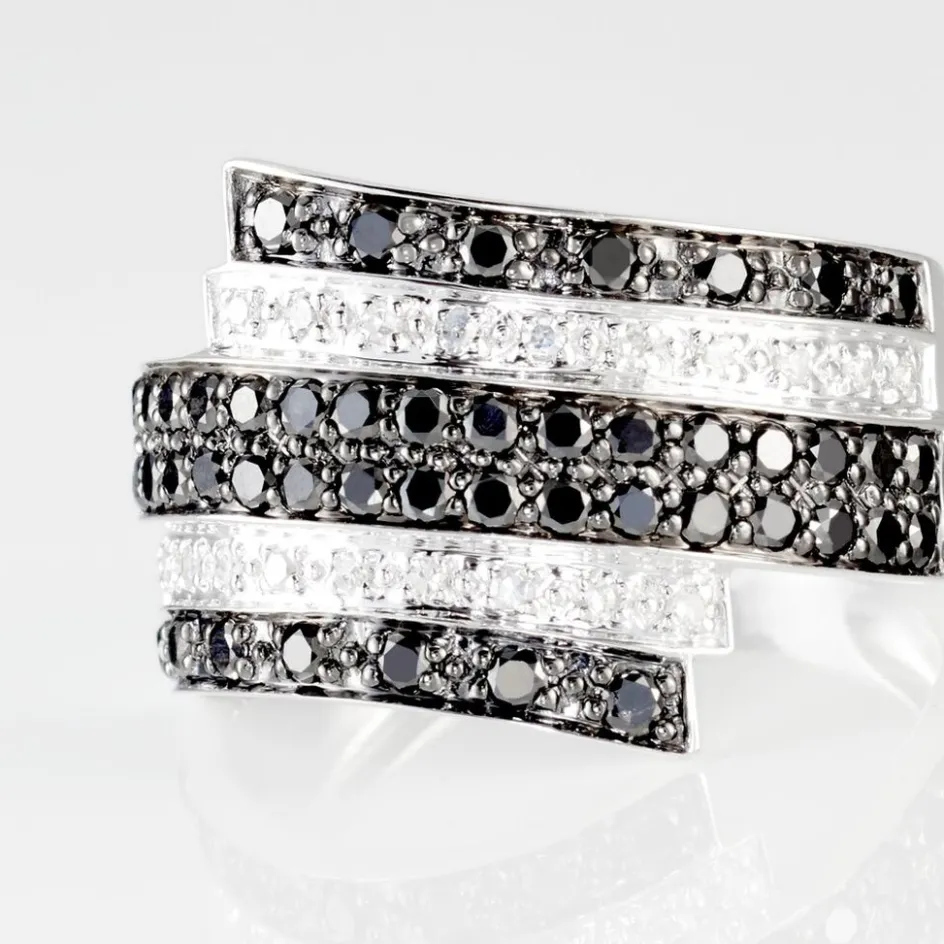 Bague Or Blanc 375/1000 Diamants Blancs Et Noirs