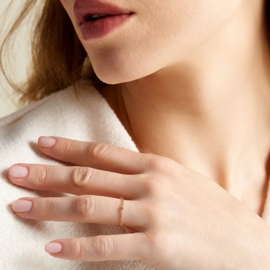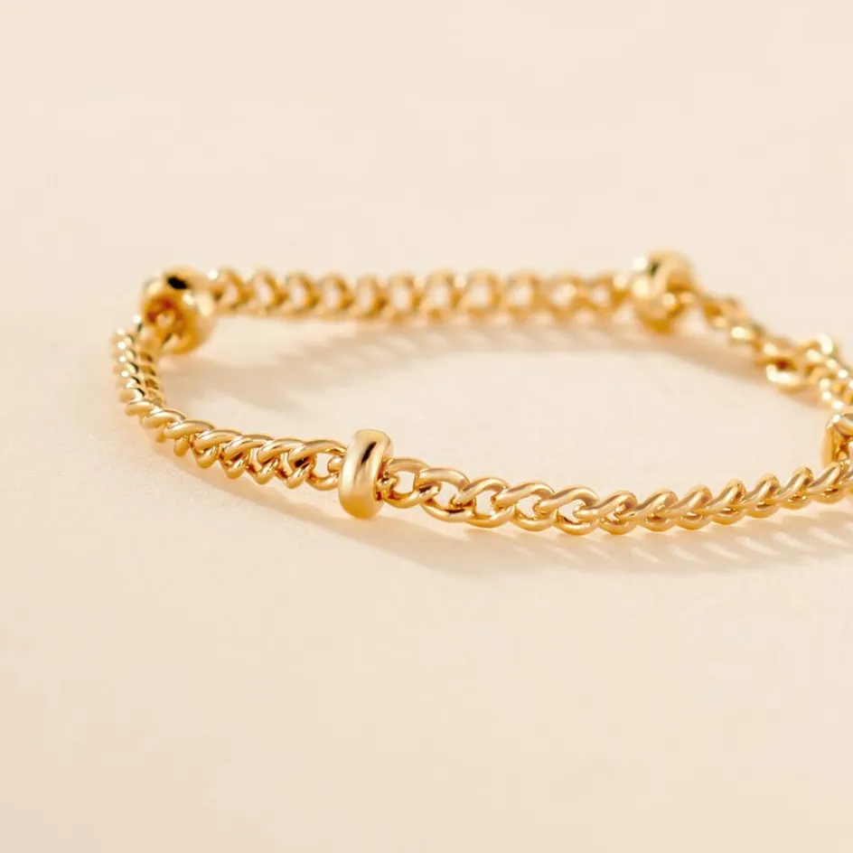 Bague Chaine Plaqué Or Jaune Maille Boules