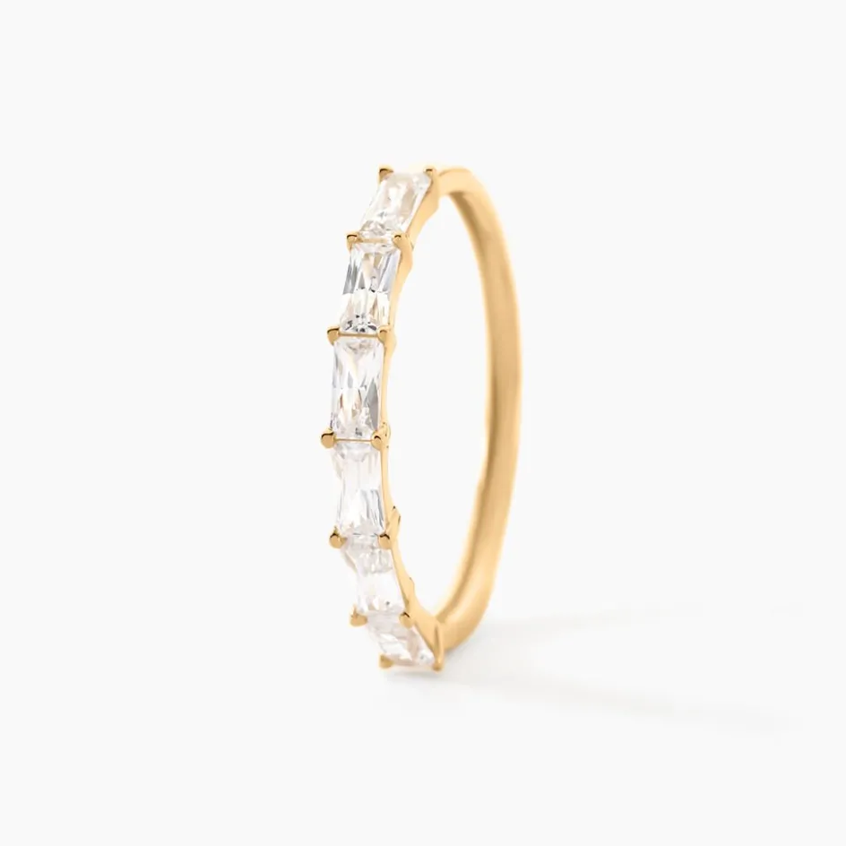 Demi Alliance Or Jaune 375/1000 Oxydes De Zirconium Rectangle Serti Griffes
