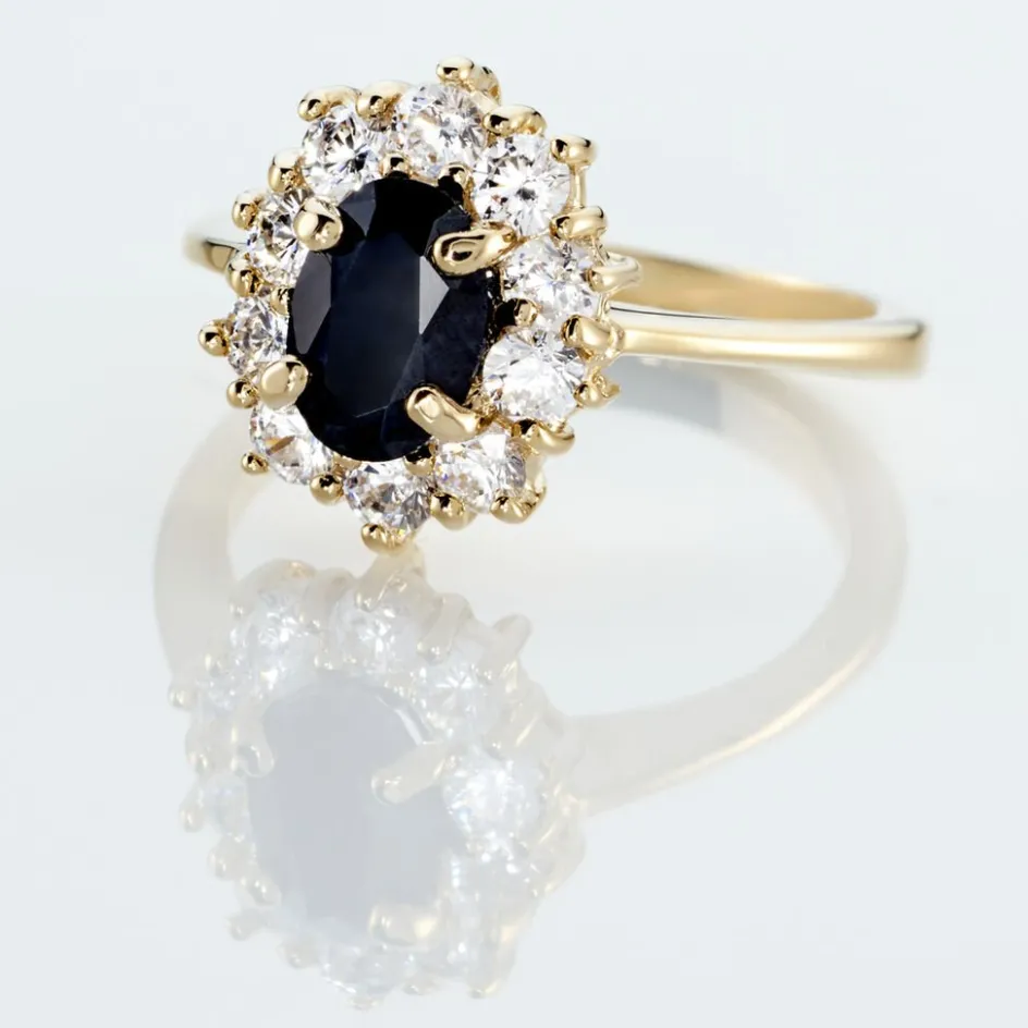 Bague Plaqué Or Jaune Pierre Bleue Entourage Oxydes De Zirconium Sertis Griffes