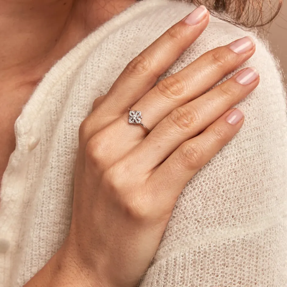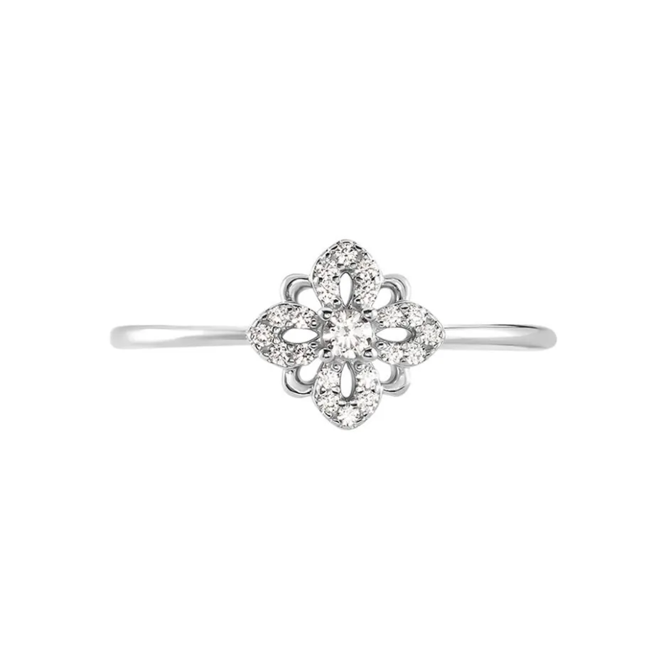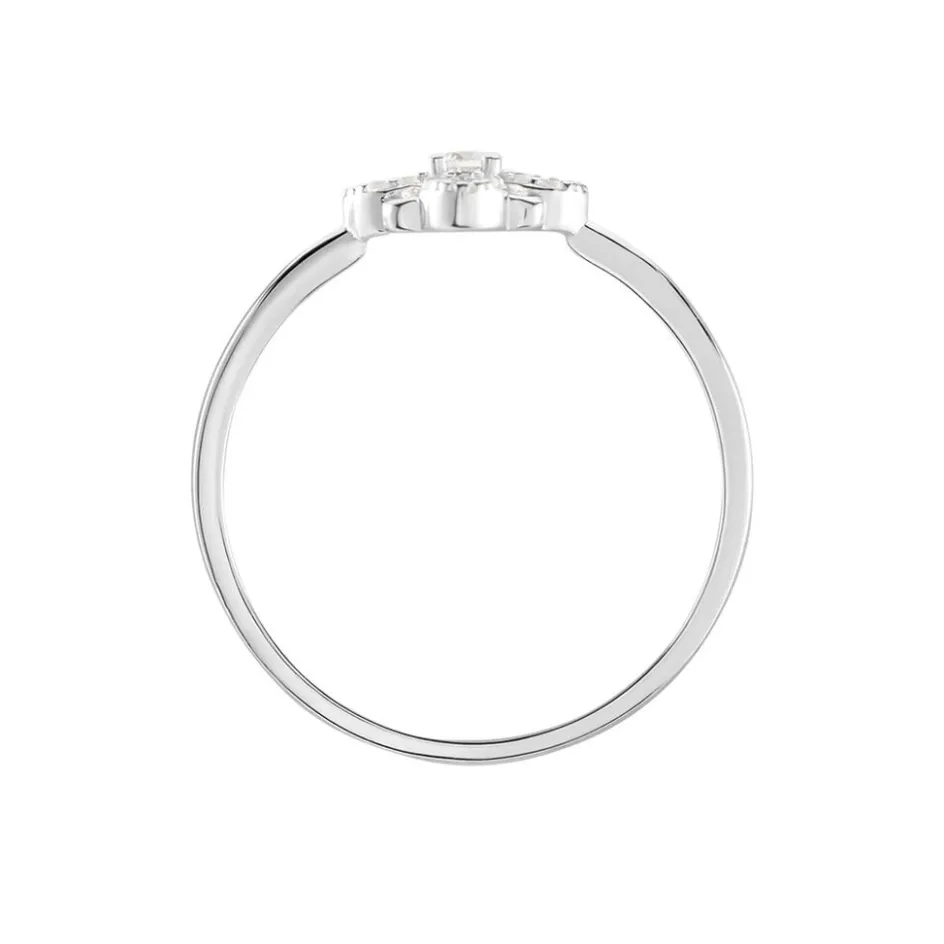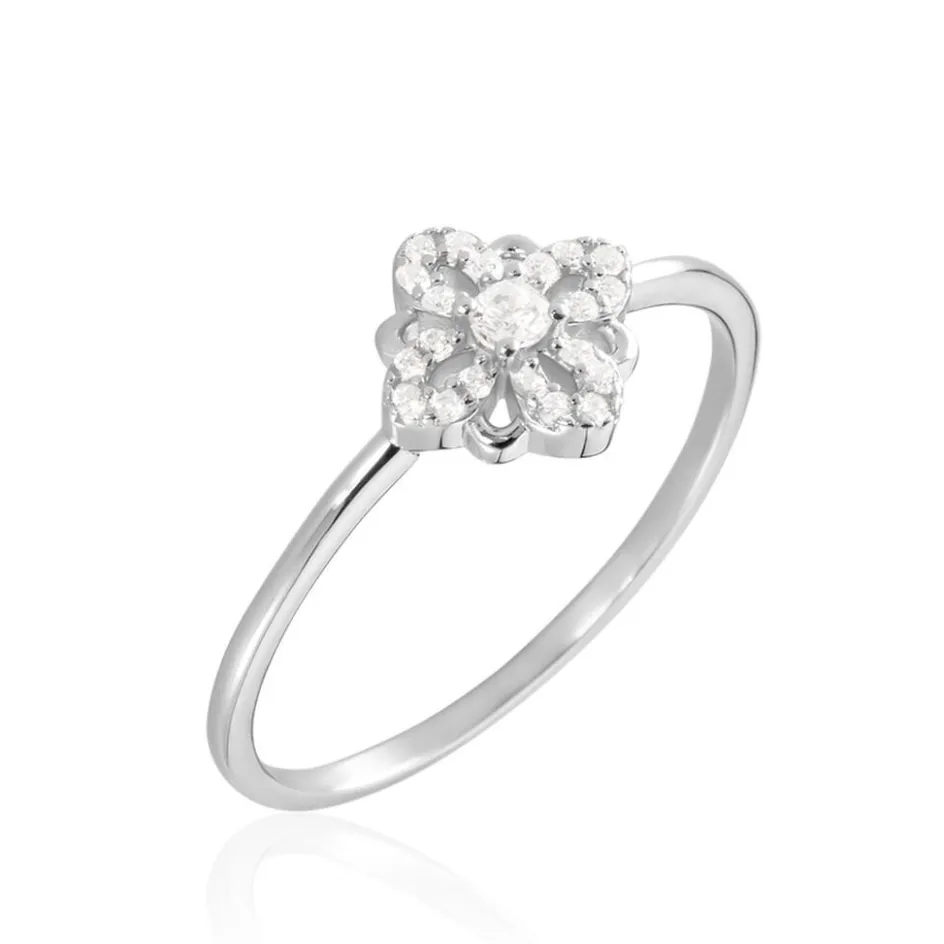 Bague Argent 925/1000 Fleur Pavage Oxyde De Zirconium