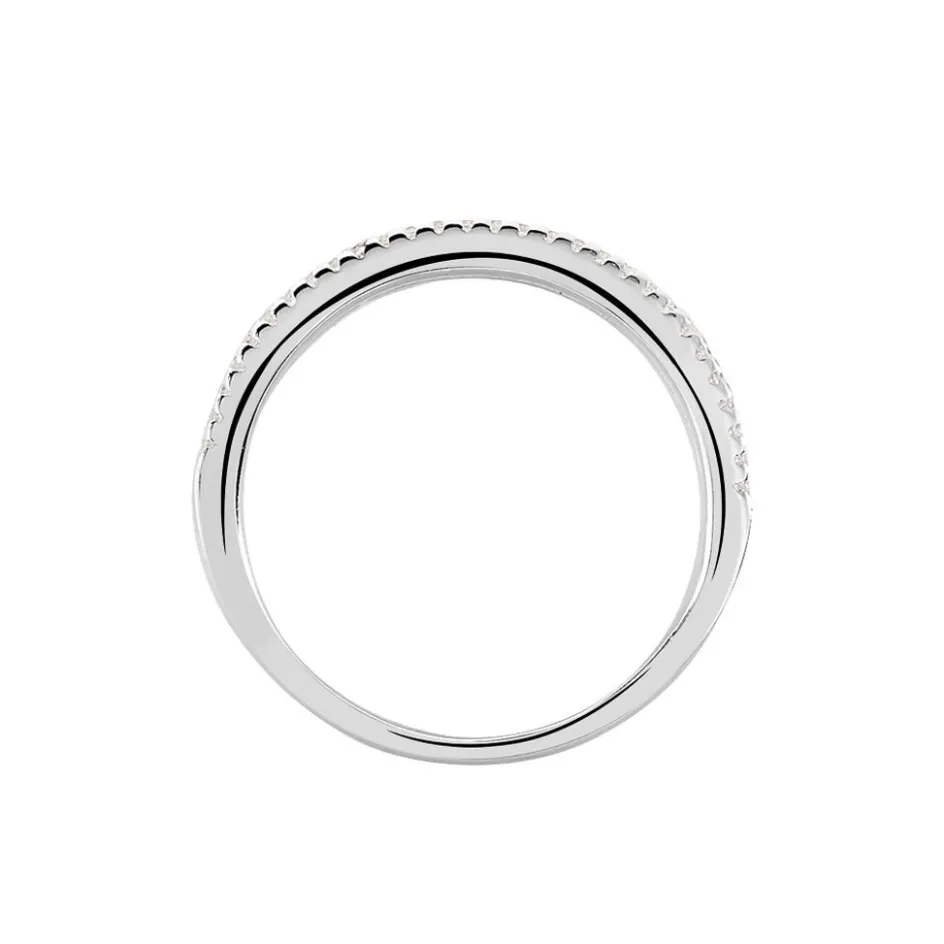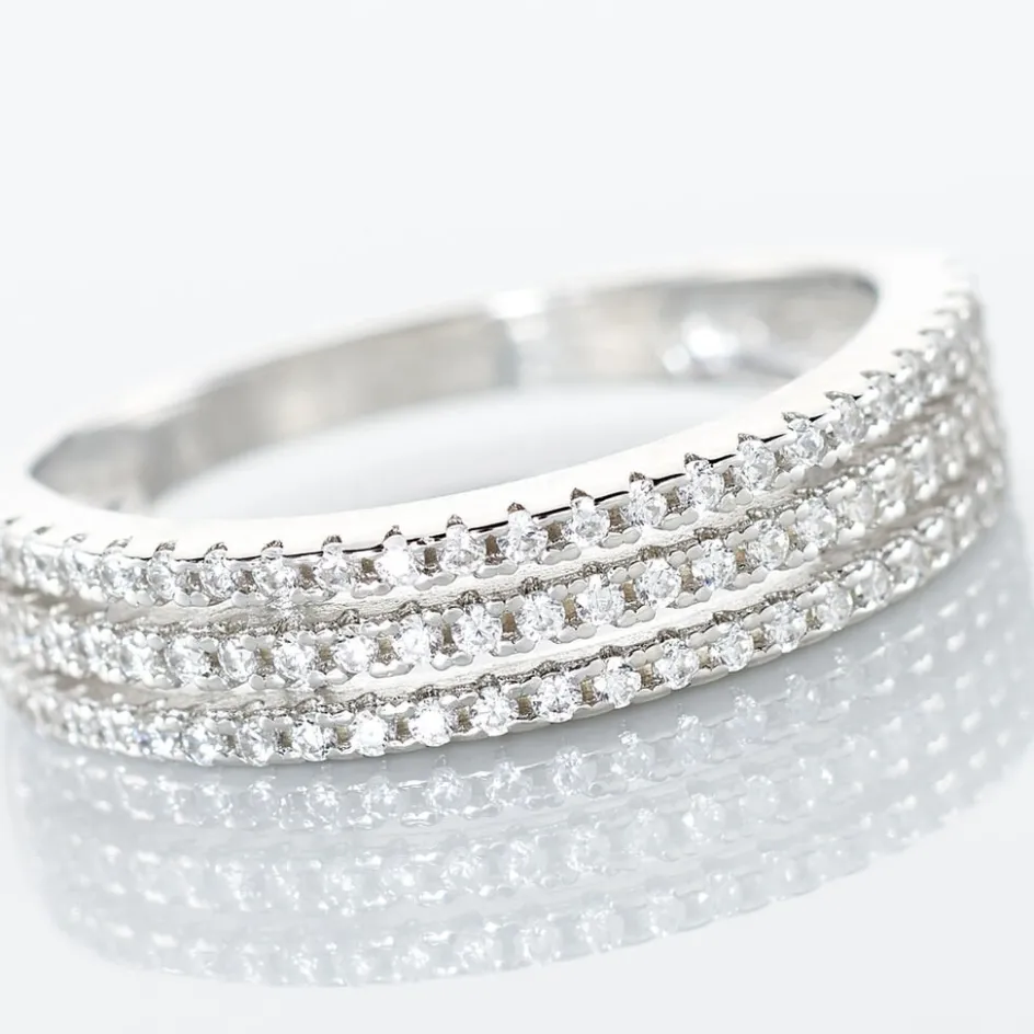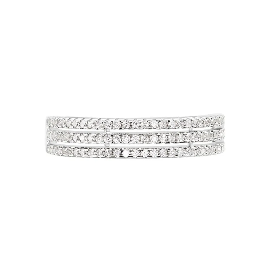 Bague Argent Blanc 925/1000 3 Rangs Pavage Oxydes De Zirconium