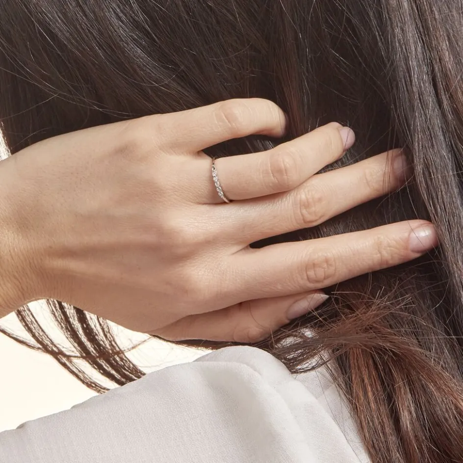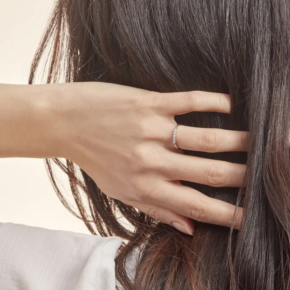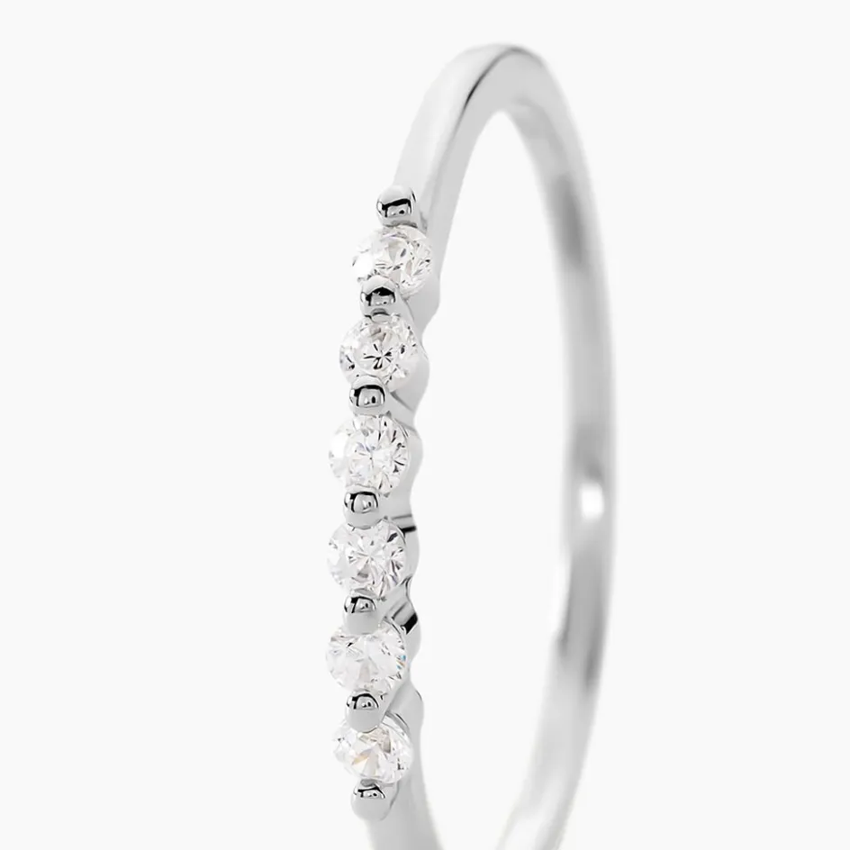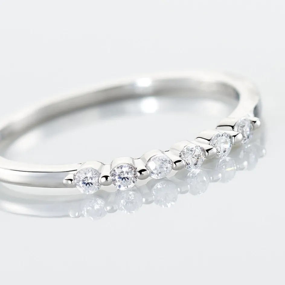 Bague Argent Blanc 925/1000 Demi Tour Oxydes De Zirconium Serti Griffes