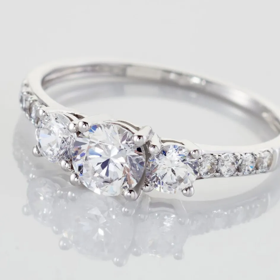 Bague Or Blanc 375/1000 Trilogie Accompagnee Oxydes De Zirconium