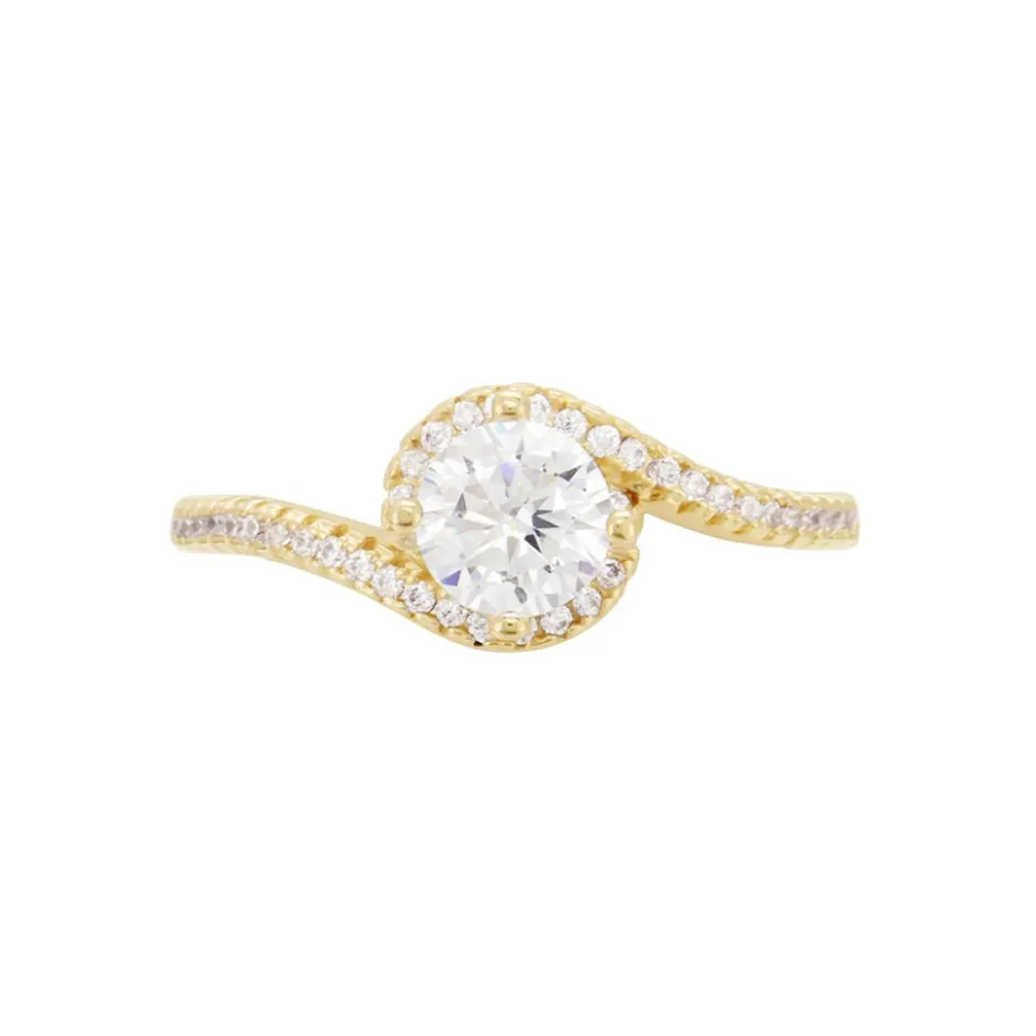 Bague Plaque Or Jaune Vrille Oxydes De Zirconium