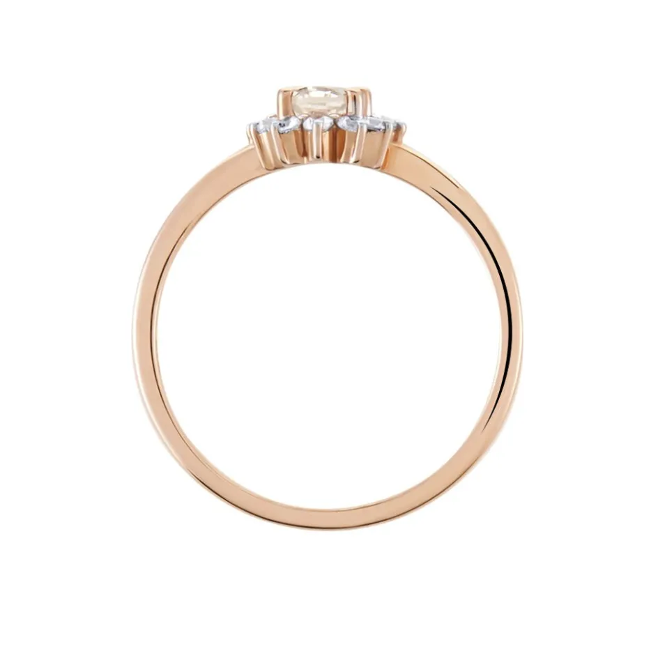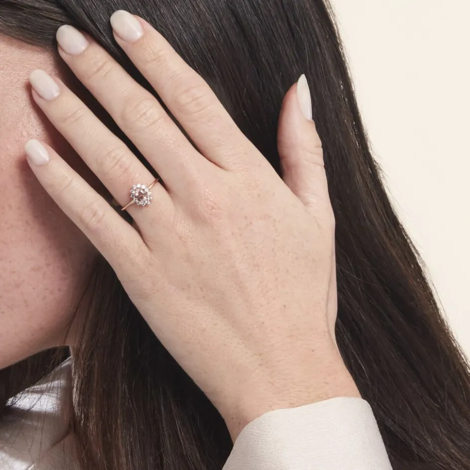 Bague Marguerite Entourée Or Rose 375/1000 Morganite Peche 0.44 Cts Serti Griffes