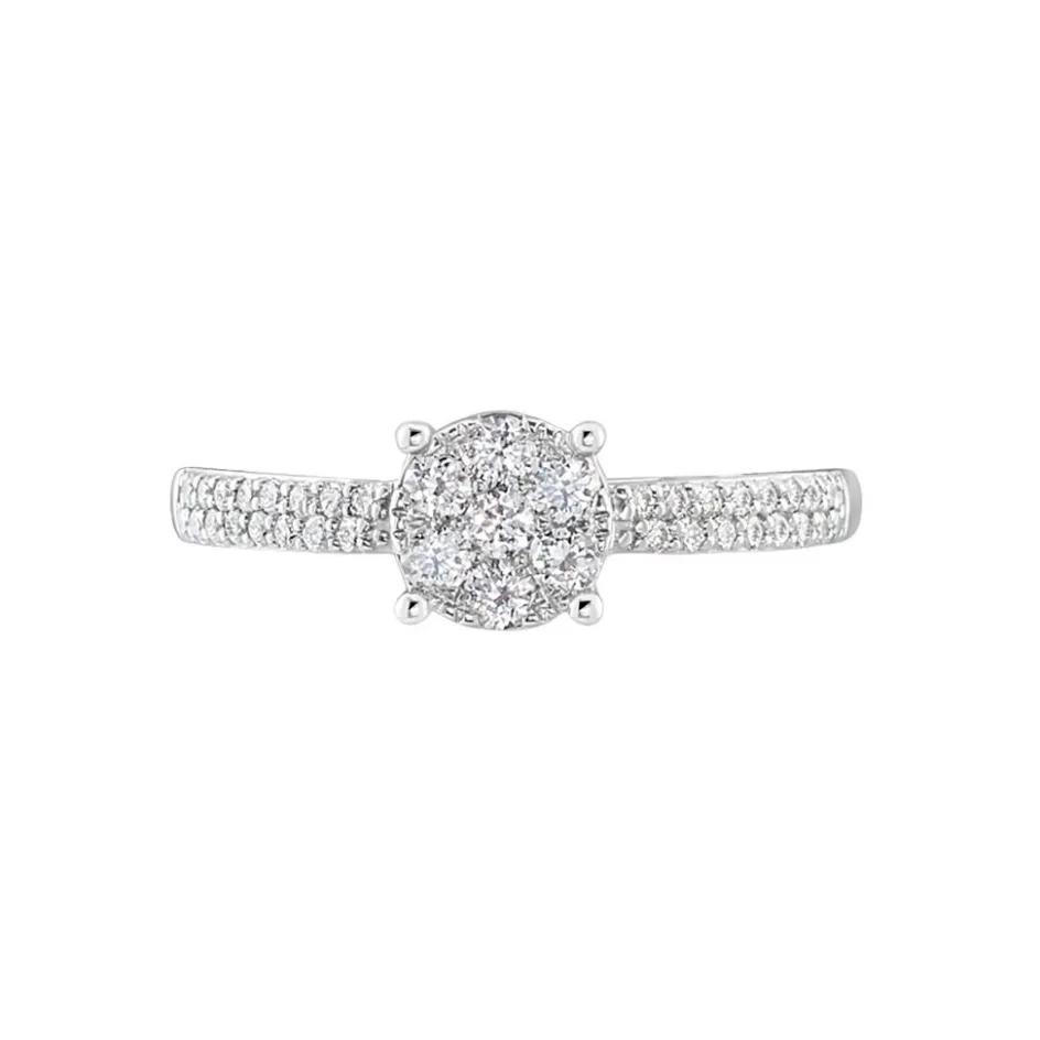 Bague Or Blanc 750/1000 Diamants Synthetique Multi Pierres 0.39cts