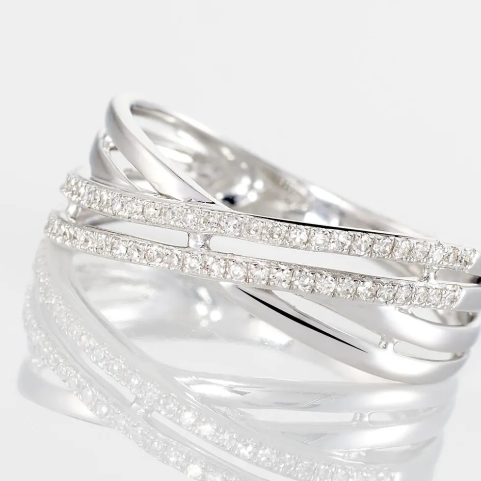 Bague Or Blanc 375/1000 Motif Entrelace Diamants