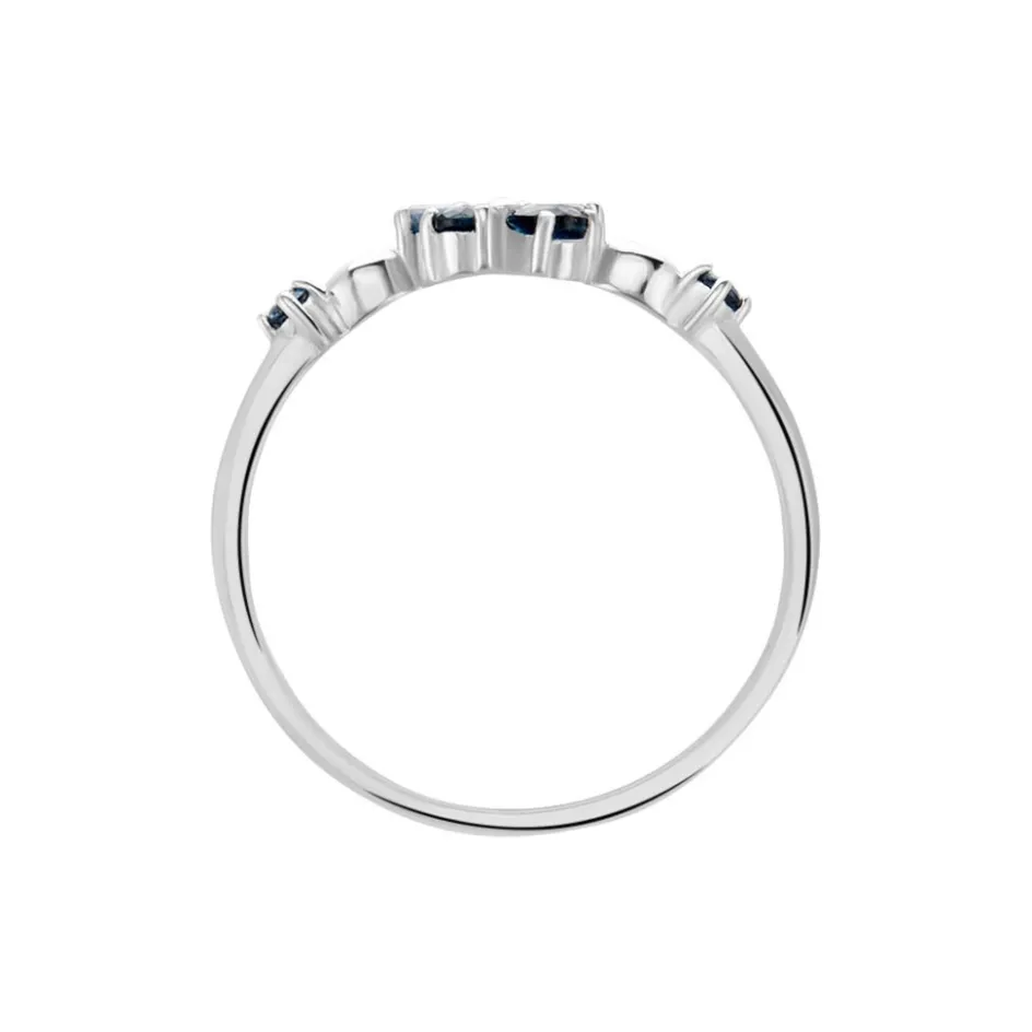 Bague Argent Blanc 925/1000 Fleur Serti Griffes Oxydes De Zirconium Bleus Accompagne Oxydes De Zirconium Bleus