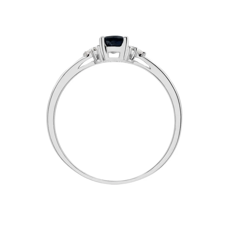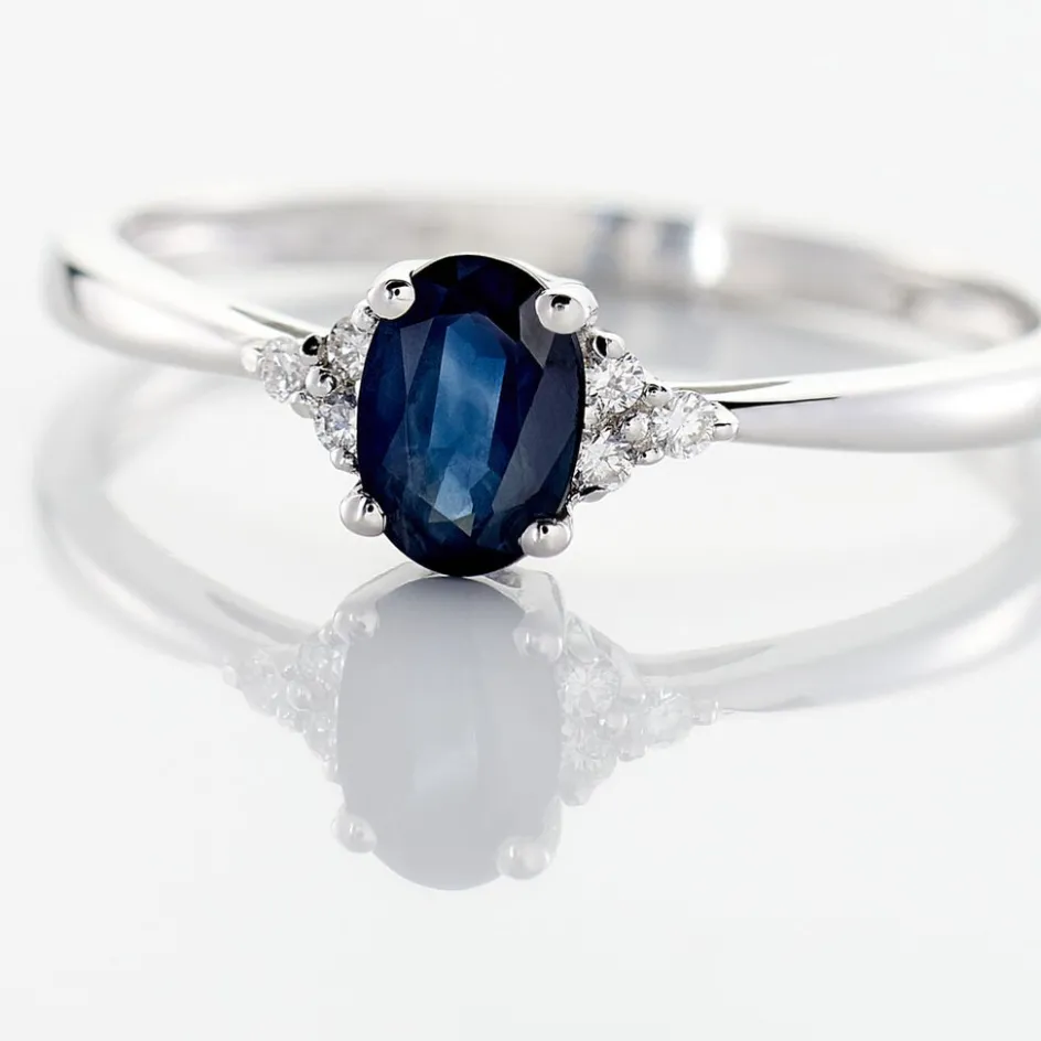 Bague Or Blanc 375/1000 Saphir Central Oval 4 Griffes 0.59cts Et Diamants