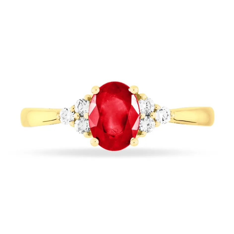 Bague Or Jaune 375/1000 Rubis Central Oval 4 Griffes 1.23cts Et Diamants