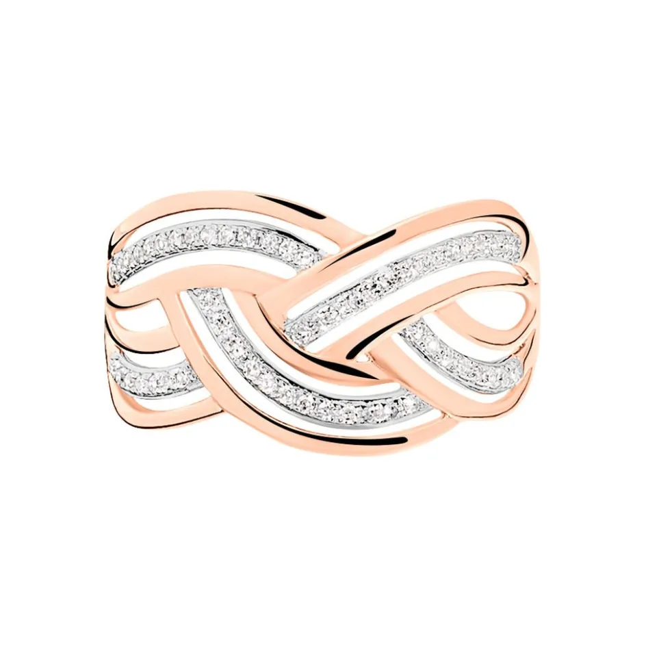 Bague Or Rose 375/1000 Diamants Entrelaces