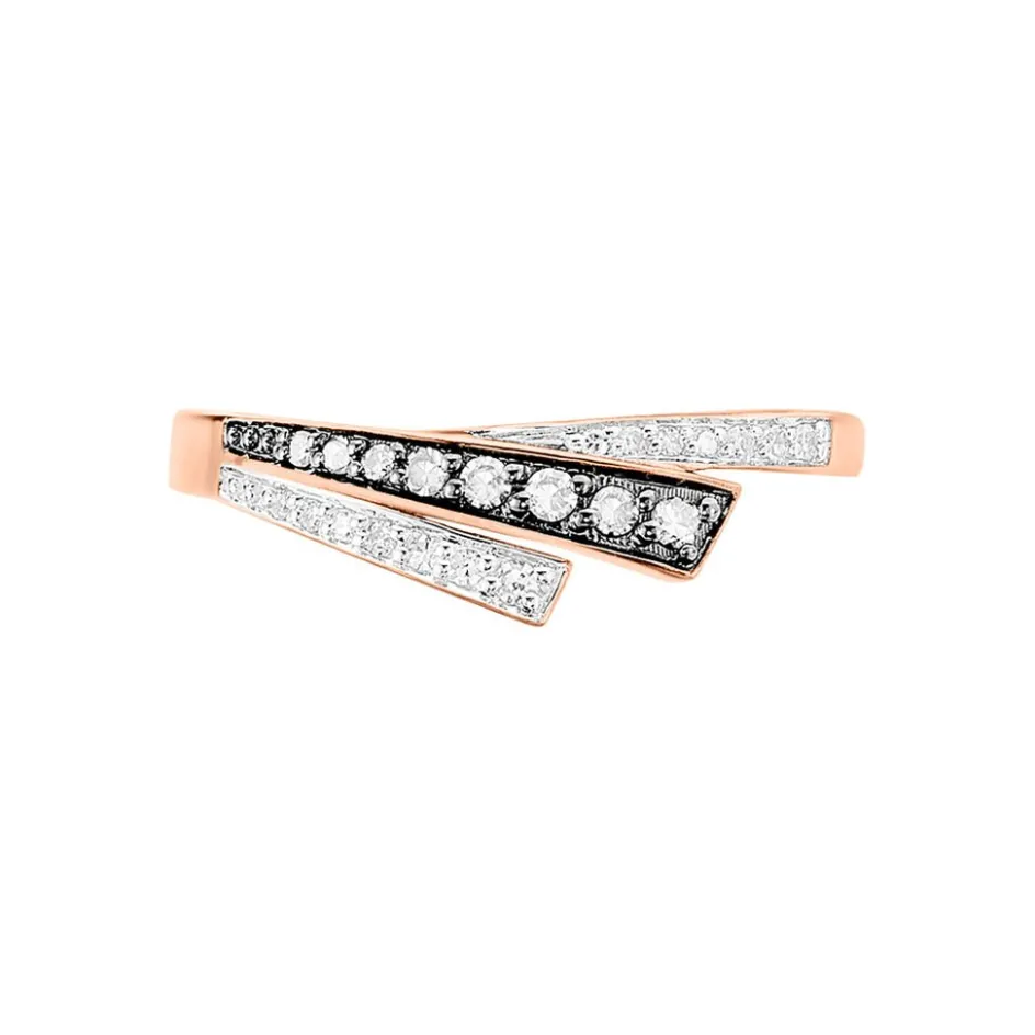 Bague Or Rose 375/1000 Pavage Diamants Blancs Et Diamants Bruns